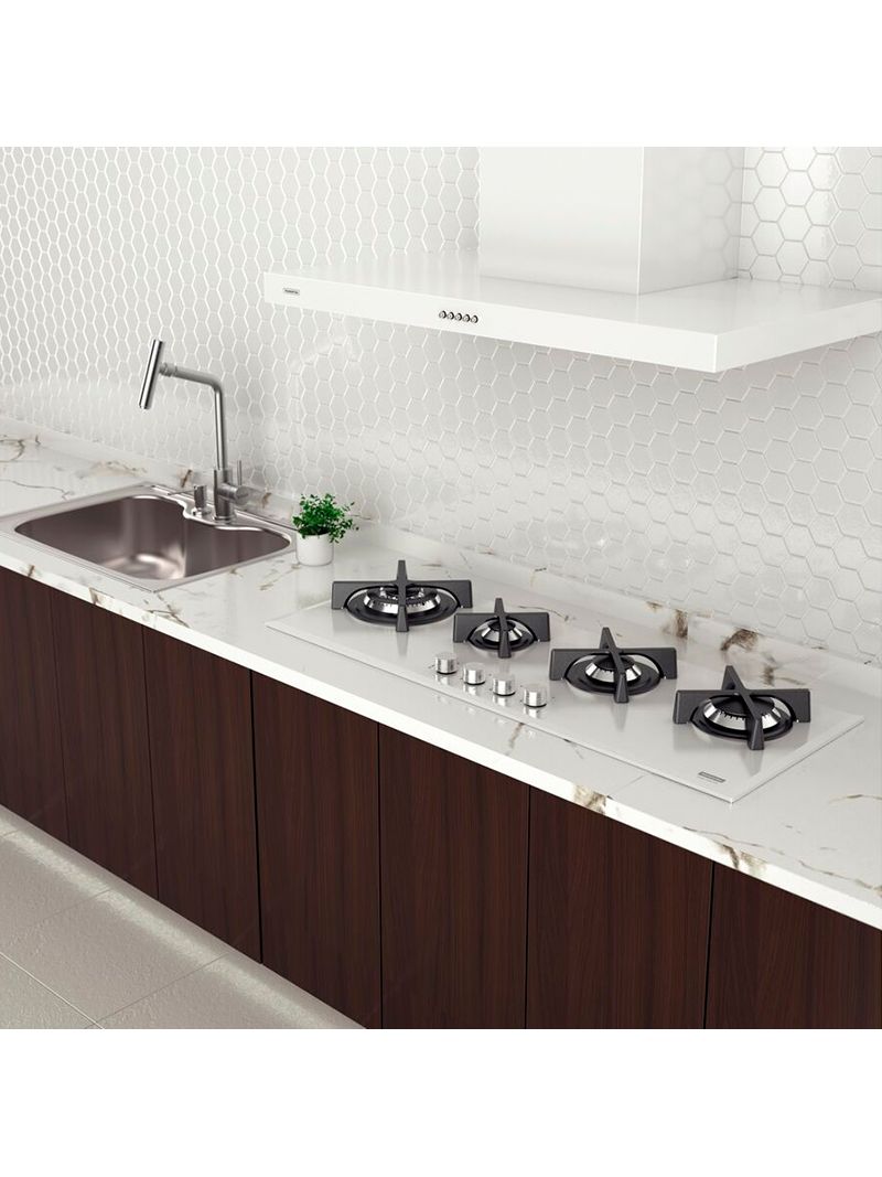 Cooktop Gás 4 Bocas Tramontina Slim Glass Flat 100cm Vidro/Branco