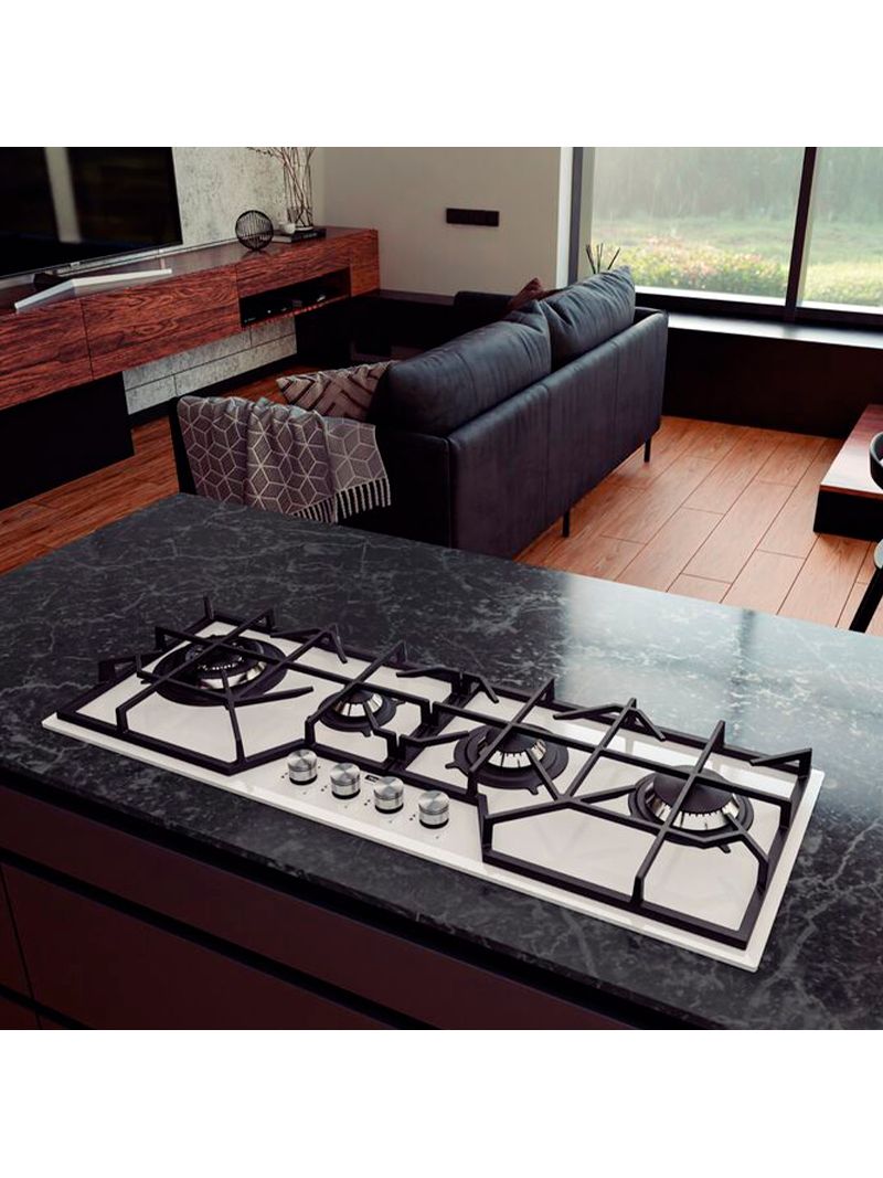O Cooktop à Gás Tramontina Slim Glass White semiprofissional reúne eficiência, segurança e design sofisticado. Com 4 queimadores e acendimento superautomático, conta com tampo em vidro de borda bisotada, manípulos em zamak e trempes inteiriças em ferro fundido, proporciona robustez e elegância para uso intenso. O sistema Safestop interrompe o fornecimento de gás se a chama apagar, o que resulta em mais segurança. Com rendimento médio de 61%, oferece alto desempenho e economia.