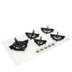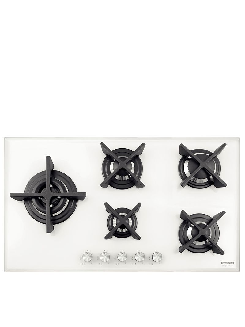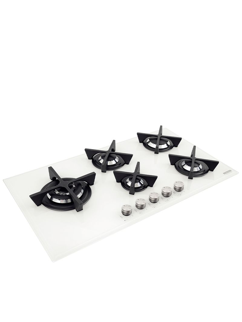 O Cooktop Tramontina Penta Glass Flat 5GG combina modernidade e segurança em vidro temperado branco com trempes individuais de ferro fundido. Seus manípulos em baquelite oferecem proteção térmica durante o uso. O sistema Safestop interrompe o gás automaticamente se a chama apagar, garantindo um uso seguro no dia a dia. Com cinco queimadores eficientes e tripla chama deslocada, permite cozinhar com panelas maiores com muito mais praticidade.