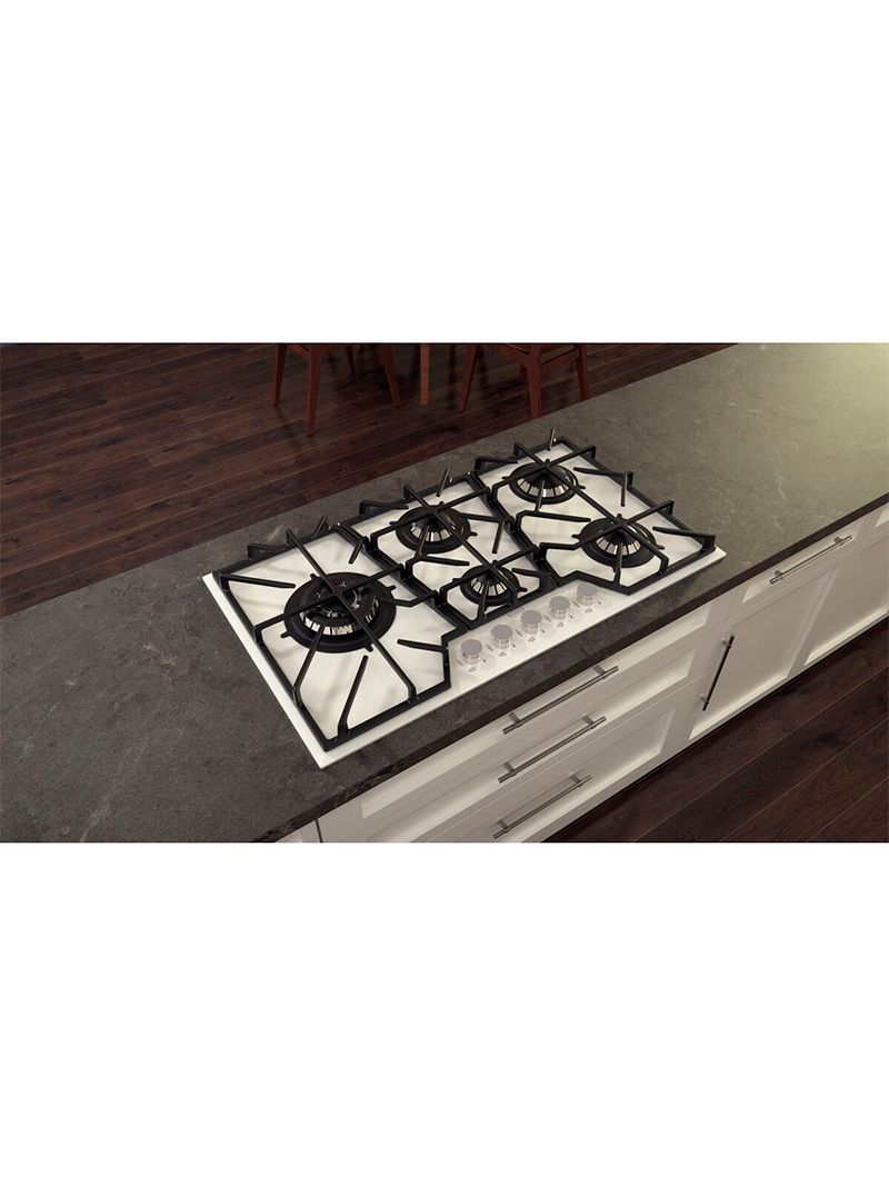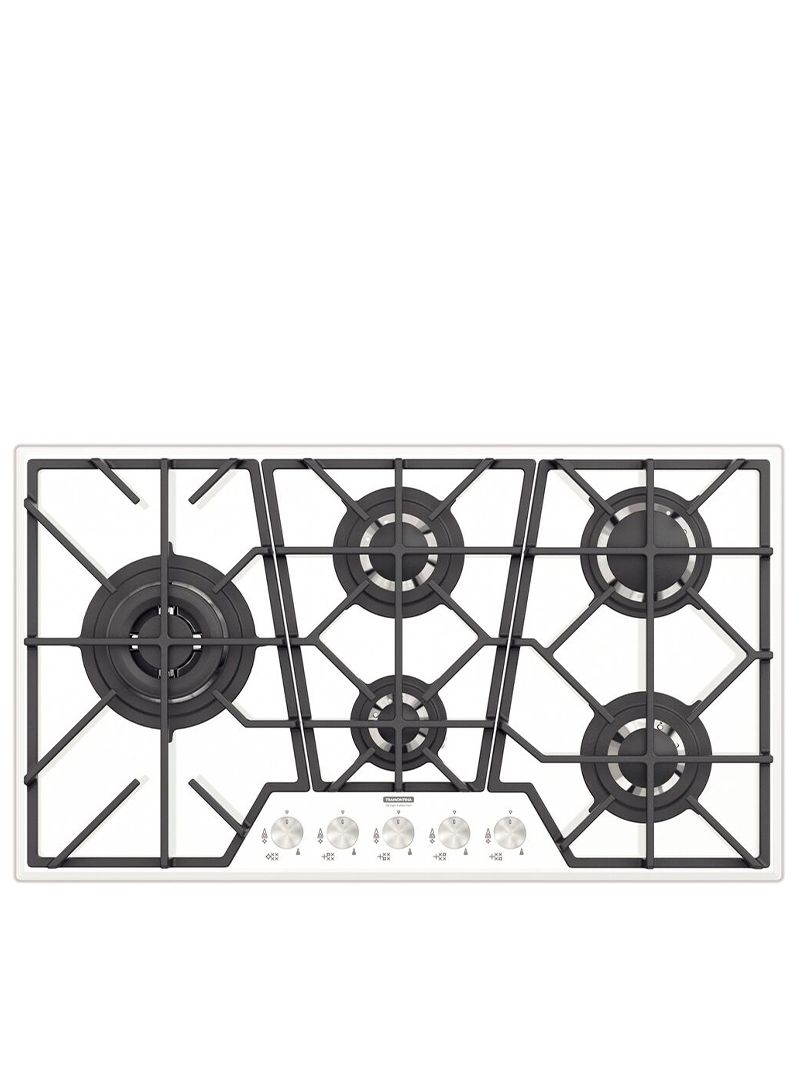 O Cooktop Tramontina Penta Glass Full 5GG White combina design elegante e funcionalidade em vidro temperado branco. Com trempes inteiriças de ferro fundido, 5 queimadores, incluindo tripla chama para panelas maiores, e acendimento superautomático, oferece praticidade e estabilidade. O sistema Safestop garante segurança, cortando o gás se a chama apagar ou não acender.