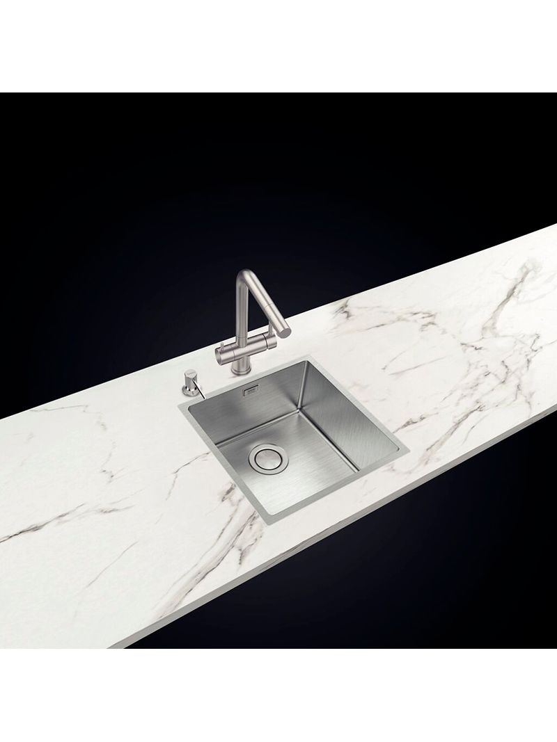 A Cuba Tramontina Quadrum 40 se destaca pelo visual sofisticado e pela construção em aço inox com acabamento acetinado, que agrega resistência, higiene e um toque moderno à cozinha. Com profundidade ampliada, atende projetos exigentes e se adapta facilmente a diferentes composições. Seu design contemporâneo valoriza o ambiente e reforça a elegância da linha Design Collection. O modelo inclui válvula de 4 1/2" com escape e manta antirruído para maior conforto no uso. Permite instalação em Semi-flush ou no sistema Flush, que deixa a cuba totalmente nivelada à bancada, resultando em um acabamento impecável.