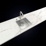 Instalação Flush, Semi-flush ou por baixo: três opções de instalação que se adaptam ao seu projeto. O sistema Flush deixa a cuba nivelada à bancada, enquanto o Semi-flush cria um acabamento discreto, e a instalação por baixo garante visual contínuo e elegante.