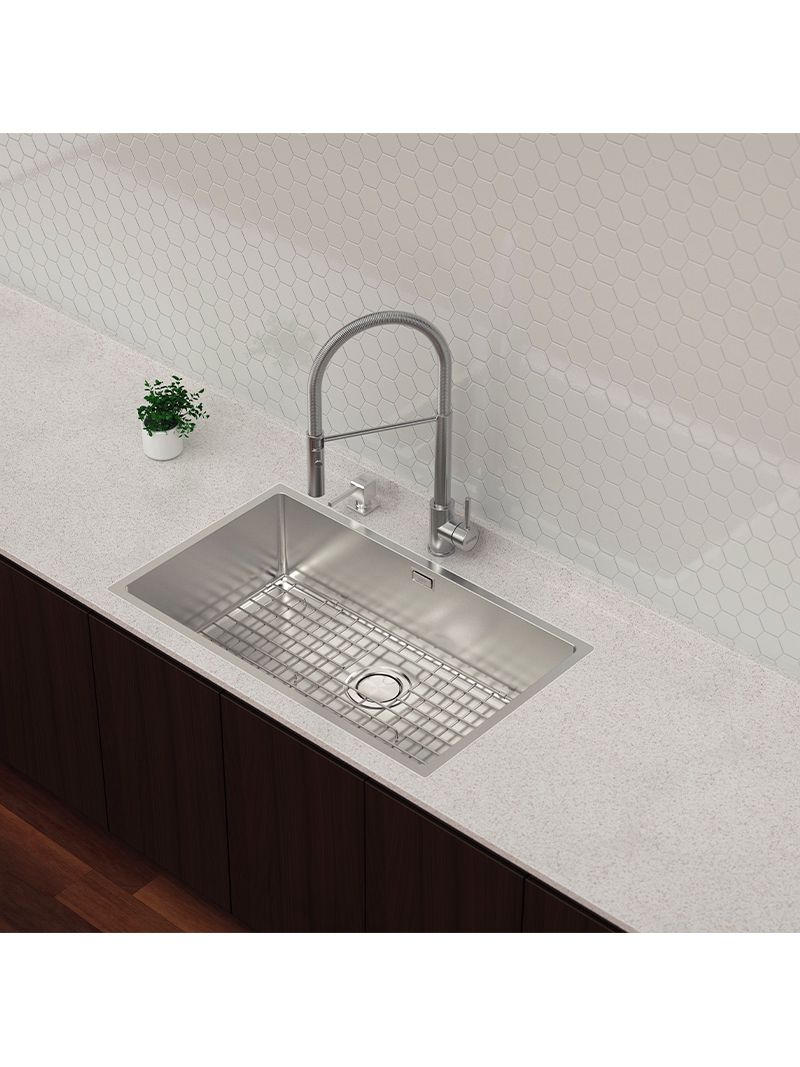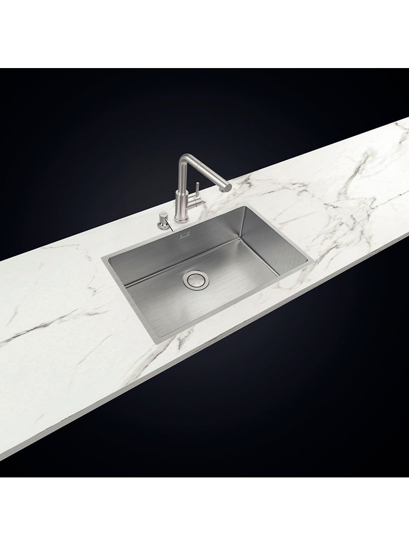 A Cuba Tramontina Quadrum 70 combina sofisticação e funcionalidade em uma peça ampla e profunda, ideal para diferentes projetos de cozinha. Produzida em aço inox com acabamento acetinado, oferece resistência, higiene e um design que valoriza qualquer ambiente. O modelo se diferencia pela profundidade ampliada, que oferece mais espaço e conforto no uso diário. Permite instalação em Flush, Semi-flush ou por baixo da bancada, garantindo versatilidade no acabamento. Acompanha válvula de 4 1/2" com escape e manta antirruído, trazendo mais praticidade e conforto ao uso diário.