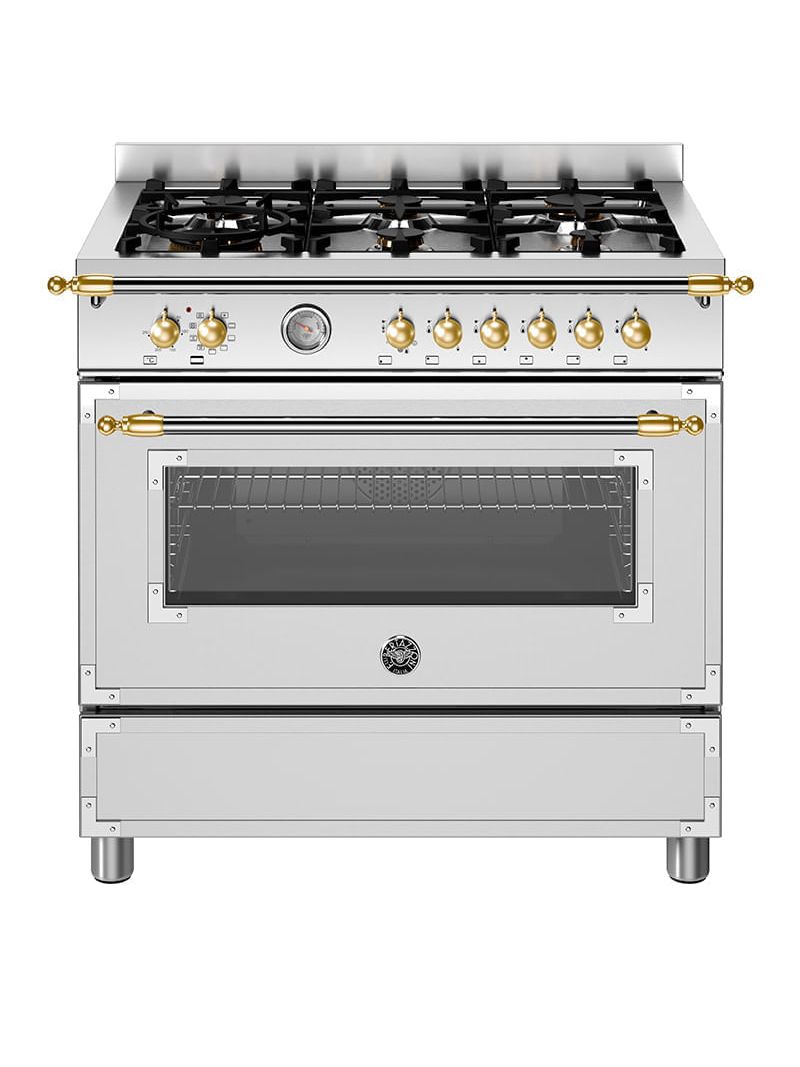 Fogão de Piso e Embutir Bertazzoni Heritage 6 Bocas Forno Elétrico 90cm Inox